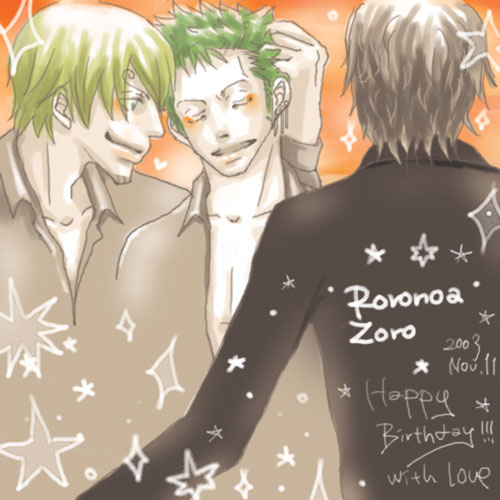 ぶるぶる様より頂きました。 この暖かい雰囲気に見事にノックダウンされました。 嬉しいのを隠しきれないようなゾロの表情、 エースにちょっと対抗してる(?)サンジの勝ち誇ったかのような表情、 それでも頑張って腕を広げてゾロを迎え入れようとするエースが素敵です。 (勝手に妄想させて頂きました、ぶるぶる様御免なさい。) 何気にゾロとサンジの服がお揃いなのもツボです。 ぶるぶる様、素敵イラスト本当に有難うございました。 |