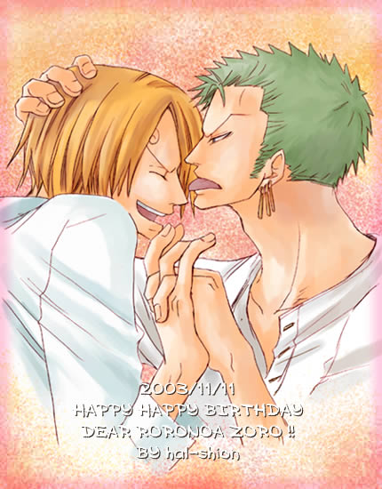 hal-shionのHAL様より頂きました。 両手に華とは正にこの事です。ゾロが羨ましい限りです。 ゾロの服装も然る事ながら、お二人もとても素敵な格好していますv ナミさんの可愛らしさとゾロの格好良さ、ロビンちゃんのセクシーさにノックアウトです。 |