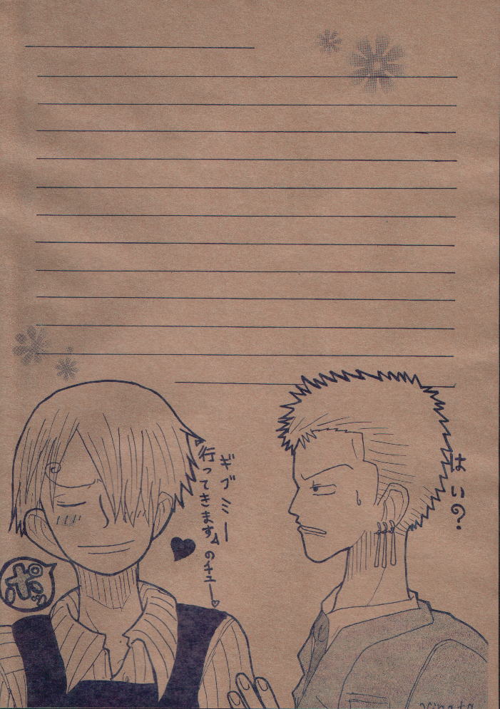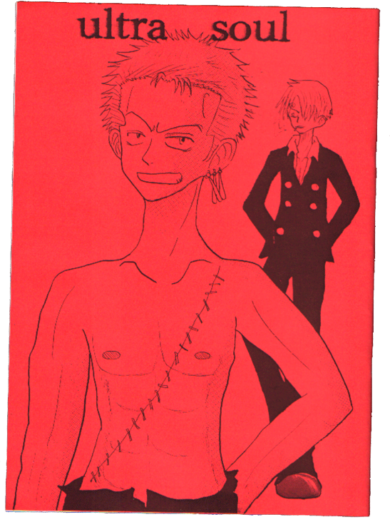 古すぎて自分で見返すのも恥ずかしい本です。絵柄も今とは全然違います。 ゾロ×サン、ゾロ×ル、そして旦那様シリーズが二話など。 恐れ多くも題名はB‘Zの歌の題名をそのまま使用しています。 表紙が赤1色に黒インクの単色刷りなので暑苦しい印象を受けますが 内容は意外と普通です。 送料が勿体無いので、他の本とセットで購入する事をお勧めします。 [表紙] |