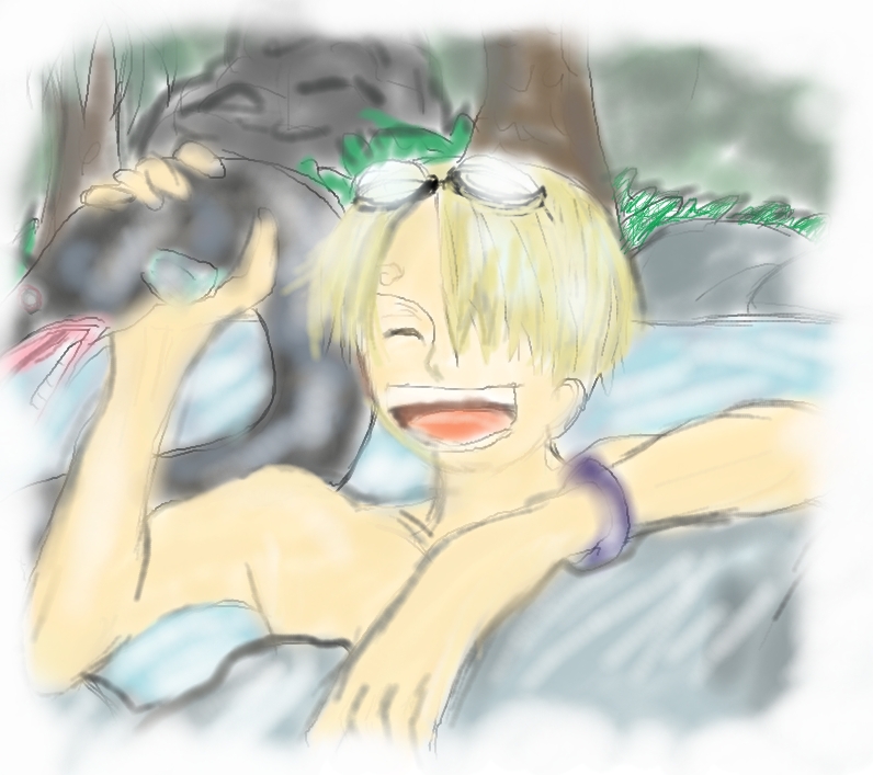 ↑ うなぎ(?)を捕まえウキウキのサンジさん。