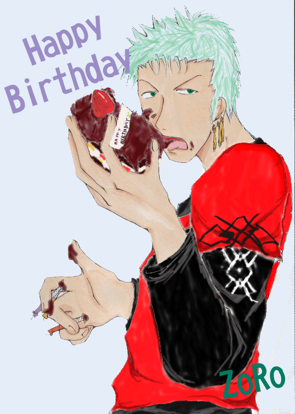 カイト様のコメントによれば、ゾロは甘いものが嫌いっぽいからチョコレートケーキだそうで…