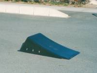 Daddy Fun Rumpだ。普通のジャンプランプは高さ60cm以上あるけれど、これは30cm位しかないミニランプで、ちゃんとアールが付いてるところがいーところ。これならアグレッシブ初心者の練習にも対応してるよね。アールがあるとジャンプの時に上に放り投げられるよーな感覚があって楽しーんだ。だから、これで練習して技を磨くのもいーけど、ただジャンプするだけだってけっこー楽しーんだよ。ミニランプだからほんと、気を張らずに楽しく遊べるんだ。