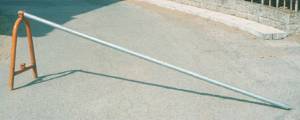 これは、よく工事の時に車止めのバリケードとして使うU字と、ホームセンターで売ってる建設資材のパイプで作ったものなんだ。U字はあまり売ってないし、買うと高いらしいので、工事している業者さんに交渉して譲ってもらおうっ!パイプは3mのものがついてる。まあ、このくらいが練習には丁度良いかなって思うんだけど・・・。