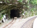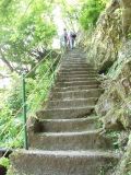階段を登り、山道に入ると眼下にトロッコ電車が見えました。かなりの高さを登ったものだなぁ。