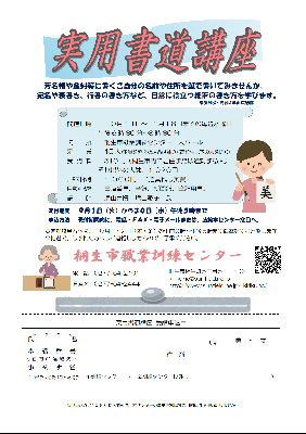 筆や墨の扱い方から毛筆の書き方の基本を学び、自分の名前や宛名、熨斗、祝儀袋の書き方などを学びます。※講座内容の詳細はパンフレットに記載 |