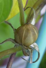 2日ほどで、花びらが落ち 長い雌しべが残っています。 雄しべは、花びらの方に付いてい るので取れてしまうのです。 そして、約1ヶ月後、種が出来ます。 |