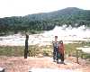 98度の熱湯を湧出する源泉は強い酸性。 穴の中で泥が吹き出すマッドポット、歩道からは熱湯が噴出し、 白濁した露天風呂は歩道から丸見え。 地熱を利用してござでお昼寝している人がたくさんいた。 |