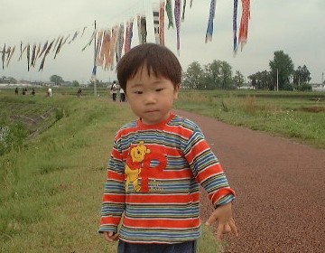 近くの鯉のぼり河川敷にて。「こいのぼり」じゃなくて「こわい」って覚えてしまいました。