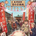 上の写真が普段の長澤薬師の様子。この写真を元にして、「目の字奉納の縁日で、お年寄りたちが楽しそうに甘酒を飲みながら歓談している様子をイラスト風に」とAIに指示を出し、「夜の縁日ではなく朝」とか、「秋ではなく春の雰囲気」など、修正を加えて出来上がったのが下のような画像です。