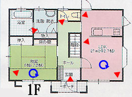 印をクリックすると、各部屋の大きな画像が御覧頂けます。