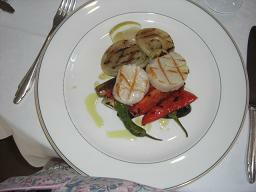 ホタテと野菜のグリル、シェリー酒