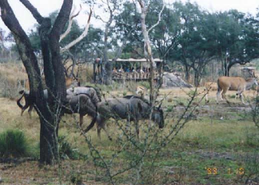 《アニマルキングダム》 98年4月にオープンしたWDWで4番目のパーク。名前の通り動物が主役。他のパークよりも開閉園が早いので、早起きして出掛けた。パーク自体はかなり大きいが、アトラクションが少ないのでそんなに疲れを感じない。