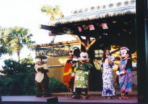 『ミッキーのポリネシアンルアウ』は、子供向けのディナーショー。料理がポリネシアン料理で、子供はほとんど何も食べられなかった(実は大人も・・)。ショーもしっとりとした雰囲気なので、イマイチだったかな。屋外なのでとにかく寒かった。4人で$119.47。